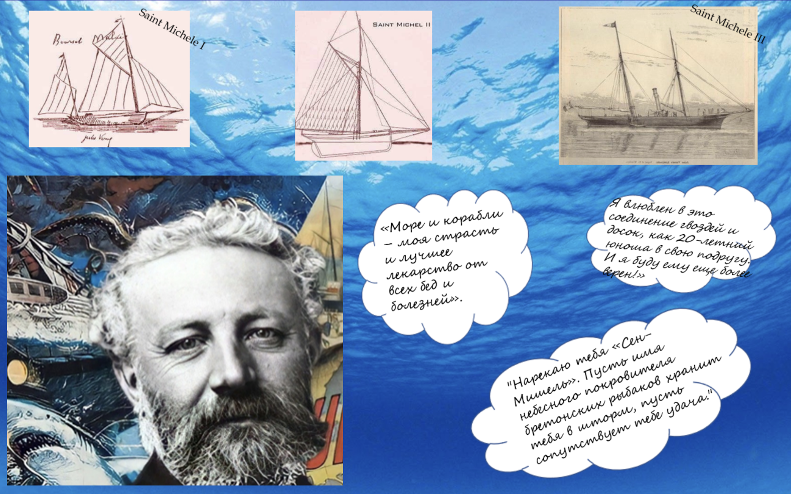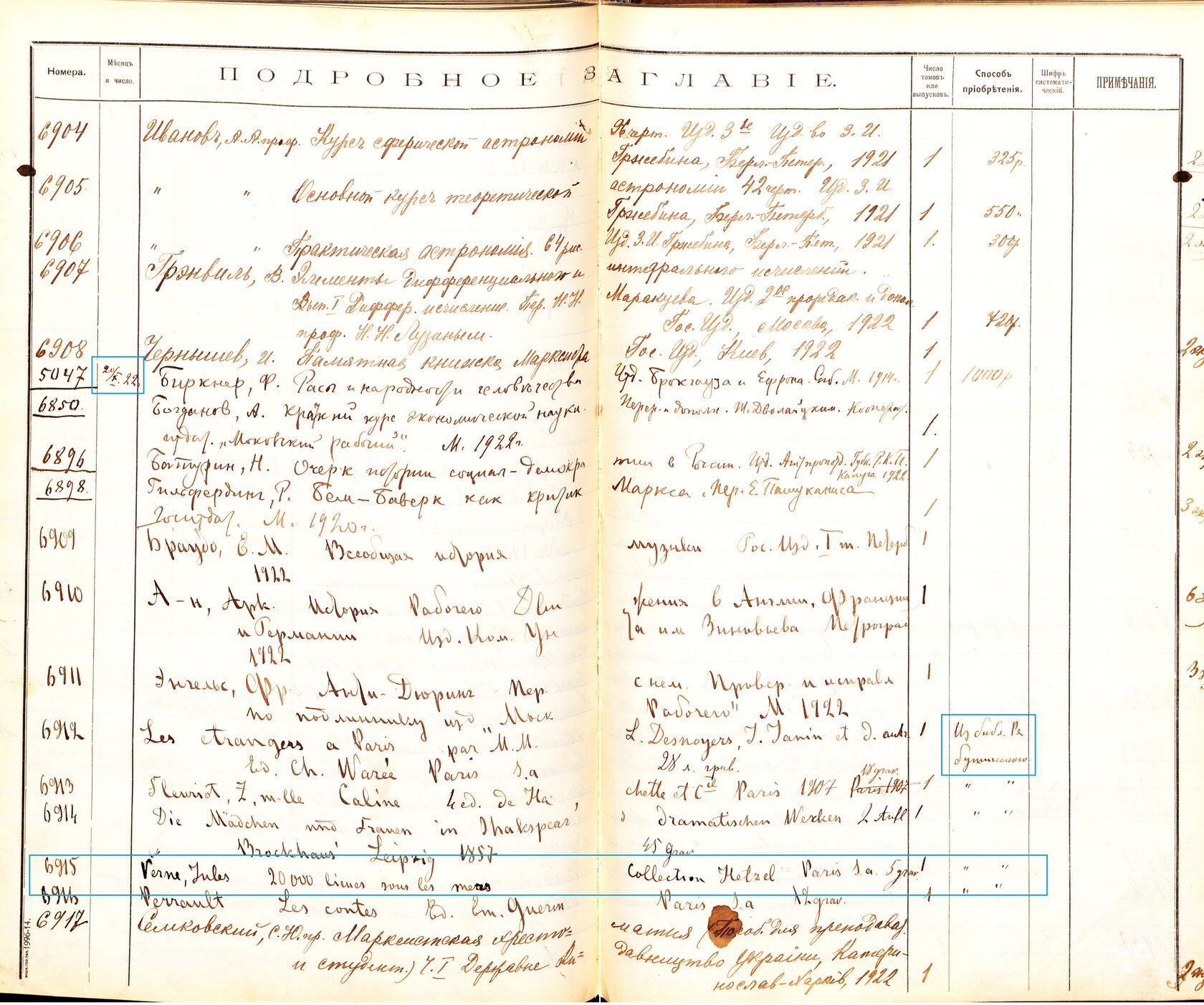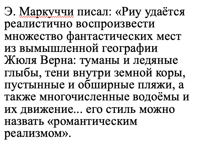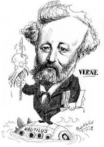 «Среди книг я увидел лучшие произведения древних и современных писателей, поэтов и мыслителей, начиная с Гомера и заканчивая Виктором Гюго, от Ксенофонта до Прудона, от Рабле до госпожи Санд. Особенно много было научных книг. Тома по механике, баллистике, гидрографии, метеорологии, географии, геологии чередовались с трудами по естественной истории. Очевидно, капитан Немо охотнее всего читал подобные произведения. Я нашёл здесь полное собрание работ Гумбольдта, Араго, Фуко, Анри Сент-Клер Девиля, Шасля, Мильна-Эдвардса, Катрфажа, Тиндаля, Фарадея, Бертло, Секки, Петермана, капитана Мори, Агассиса, а также «Записки» Академии наук, сборники различных географических обществ».